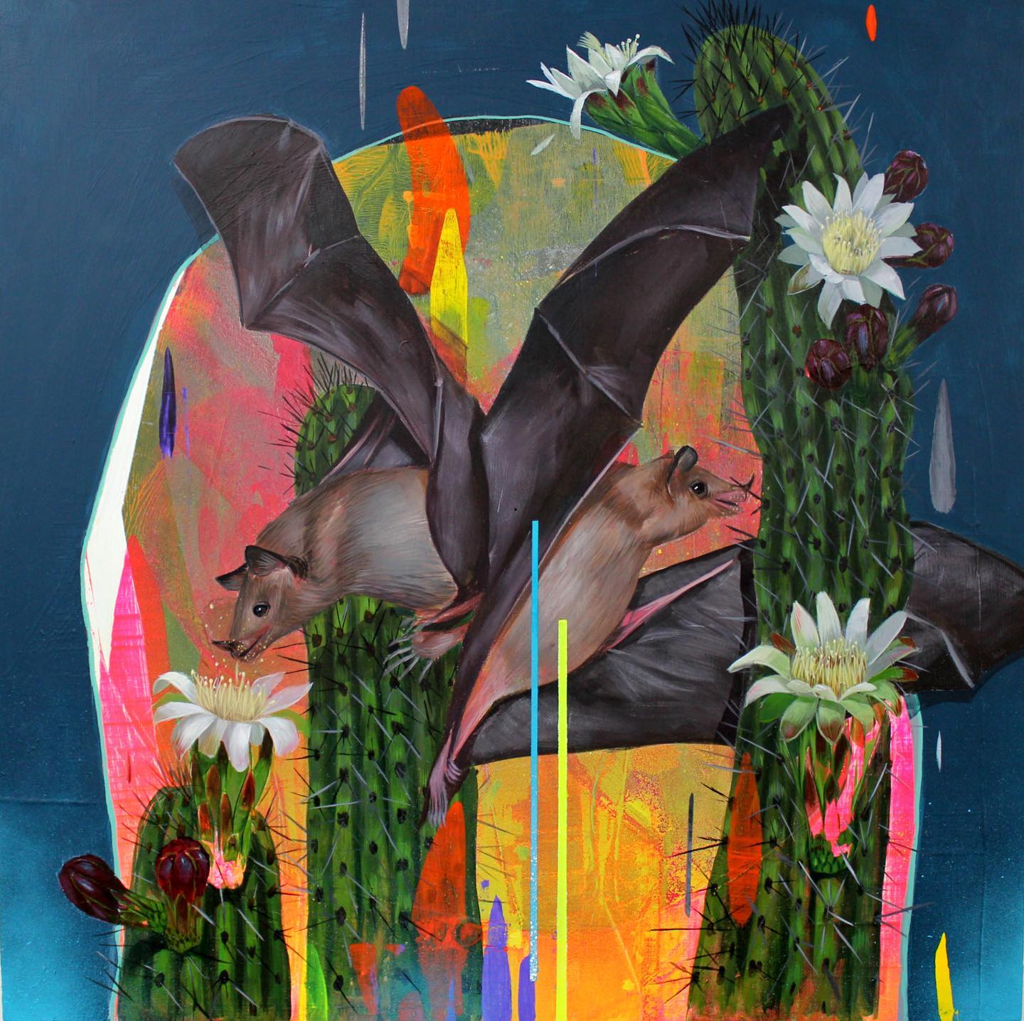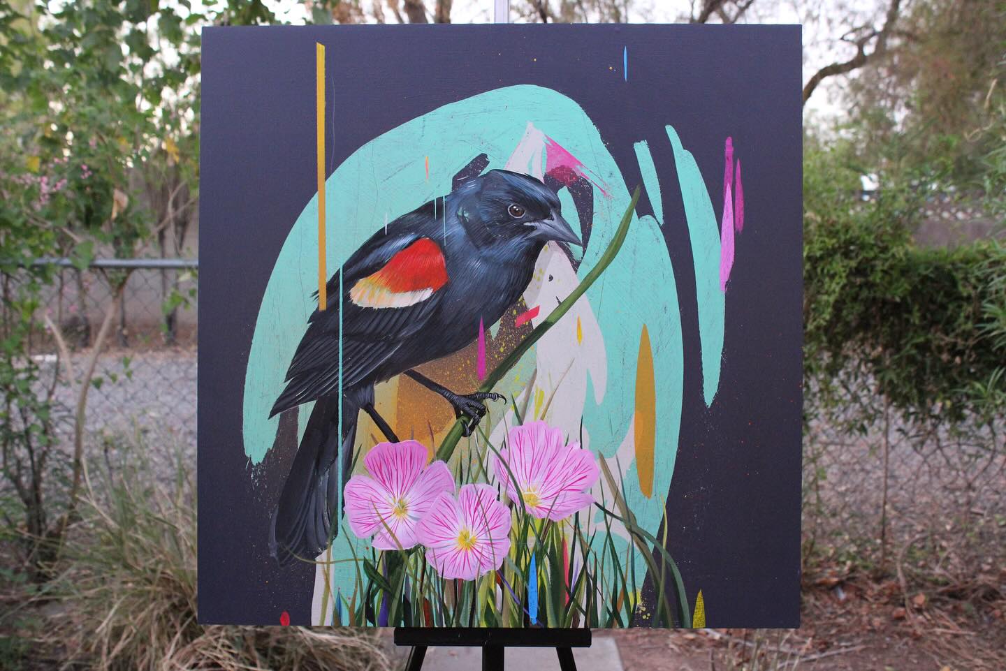 Frank Gonzales is an extraordinary contemporary painter known for his vivid and imaginative explorations of Southwestern flora and fauna. Blending scientific curiosity with artistic intuition, his work often features birds, botanical forms, and astonishing bursts of color that blur the line between observation and abstraction. His distinctive style—marked by layered imagery, color glitches, and spontaneous compositions—reflects both movement and stillness, intention and uncertainty.