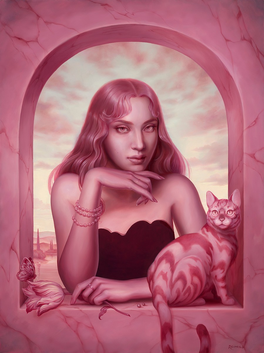 Allison Reimold, a graduate of Otis College of Art and Design, was born and raised in Los Angeles where she currently lives. By day, she works full time as an award-winning illustrator at an entertainment advertising firm designing posters for film and TV, and by night, paints vivid and detailed images of women intertwined with their place in the natural world.