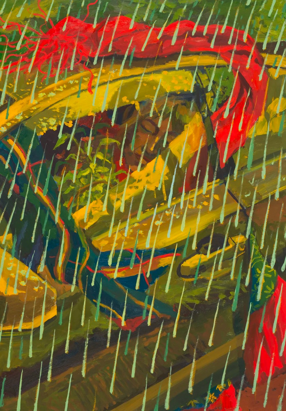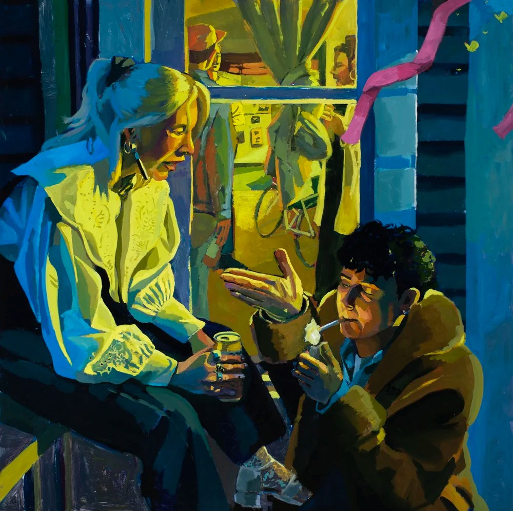 Her narrative, documentary-style works often center on intimate moments among Arkansas landscapes, capturing themes of community, isolation, beauty, and love. Drawing from direct observation of growing up in Little Rock and regional poetry, Kresse’s paintings frame comfort and connection as quiet forms of resistance.