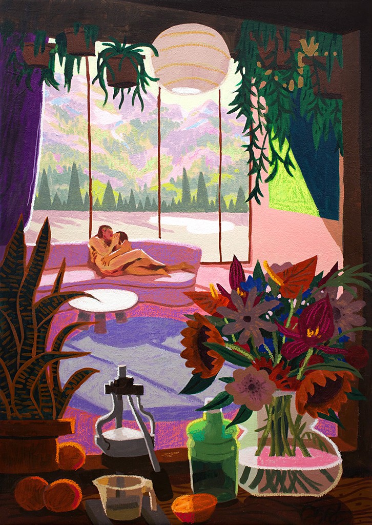 In his previous solo exhibition, Dinner Party While The World Burns (2024), Los Angeles-based Kennedy grappled with the tension between making vibrant, joyful paintings while living in a world that can often feel heavy and overwhelming. In After the Dinner Party, the artist shifts from the intensity of the gathering itself to the quieter emotional space that follows.