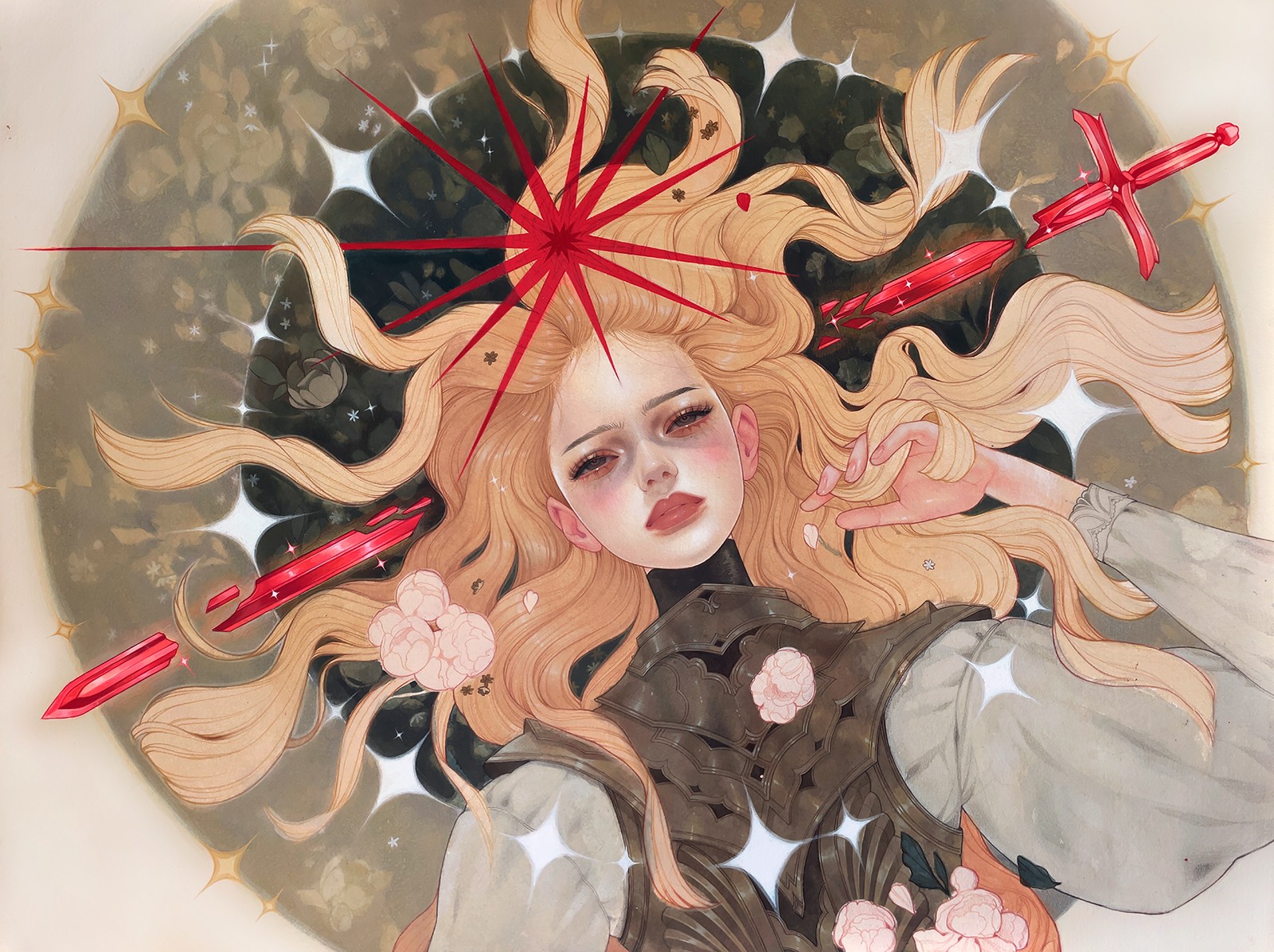 Kelsey Beckett, who currently resides in Kentucky, focuses her work mainly on feminine figures and the power they possess. Previously having found inspiration in the softer side of femininity, her work currently explores the beauty of inner strength, and how well it goes in tandem with that softness.