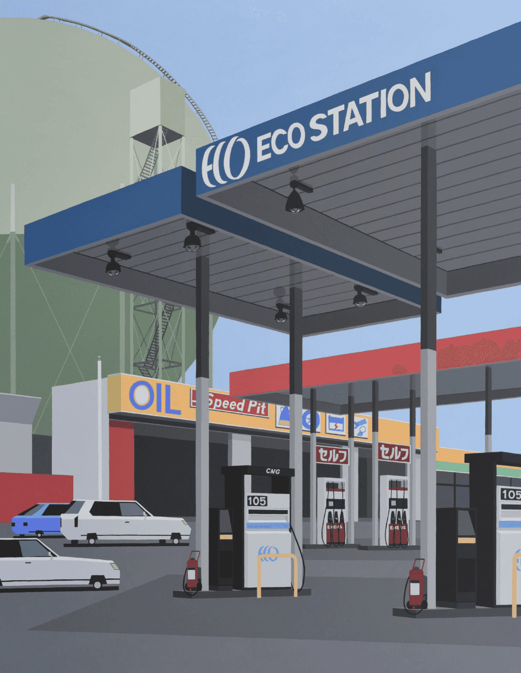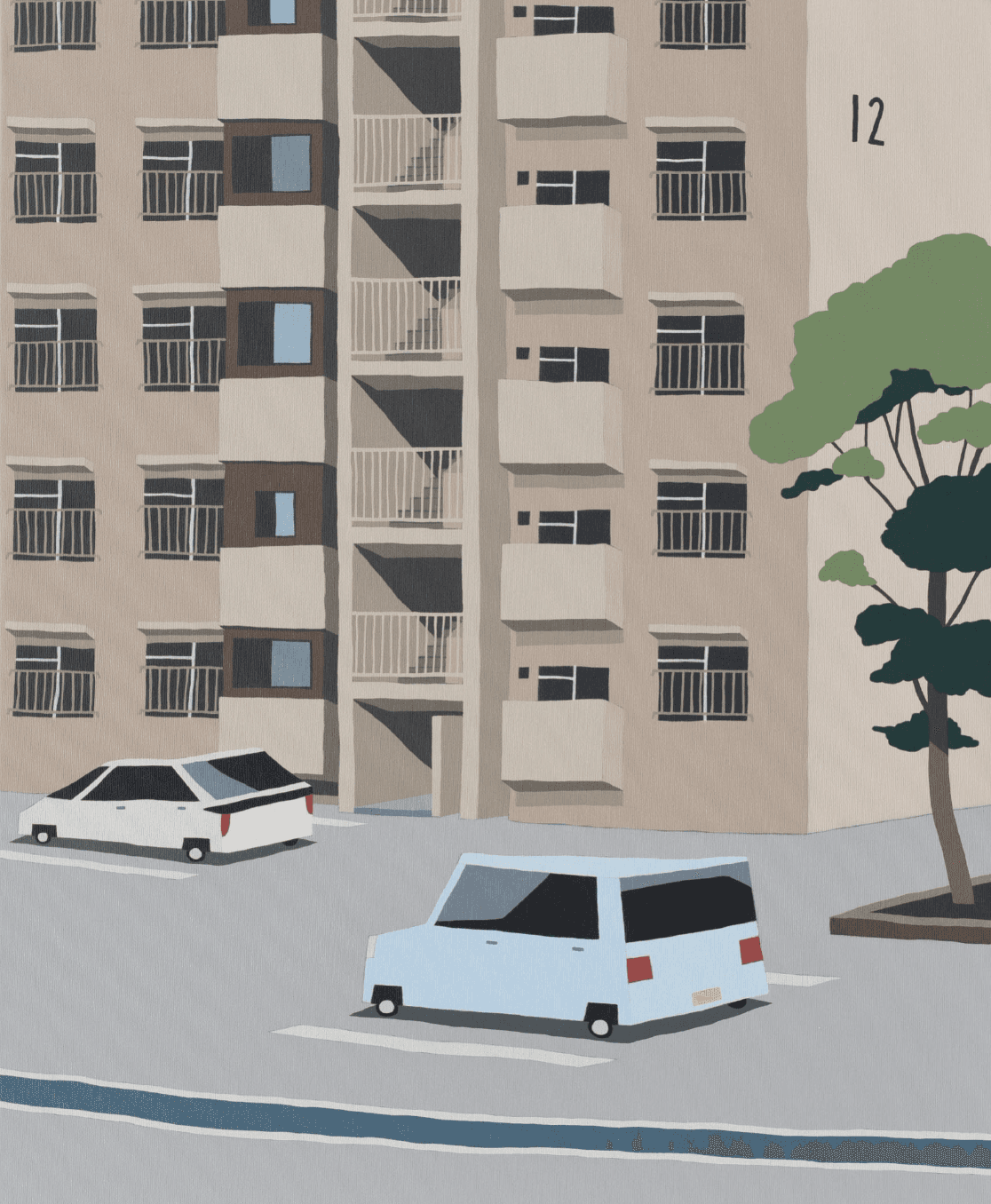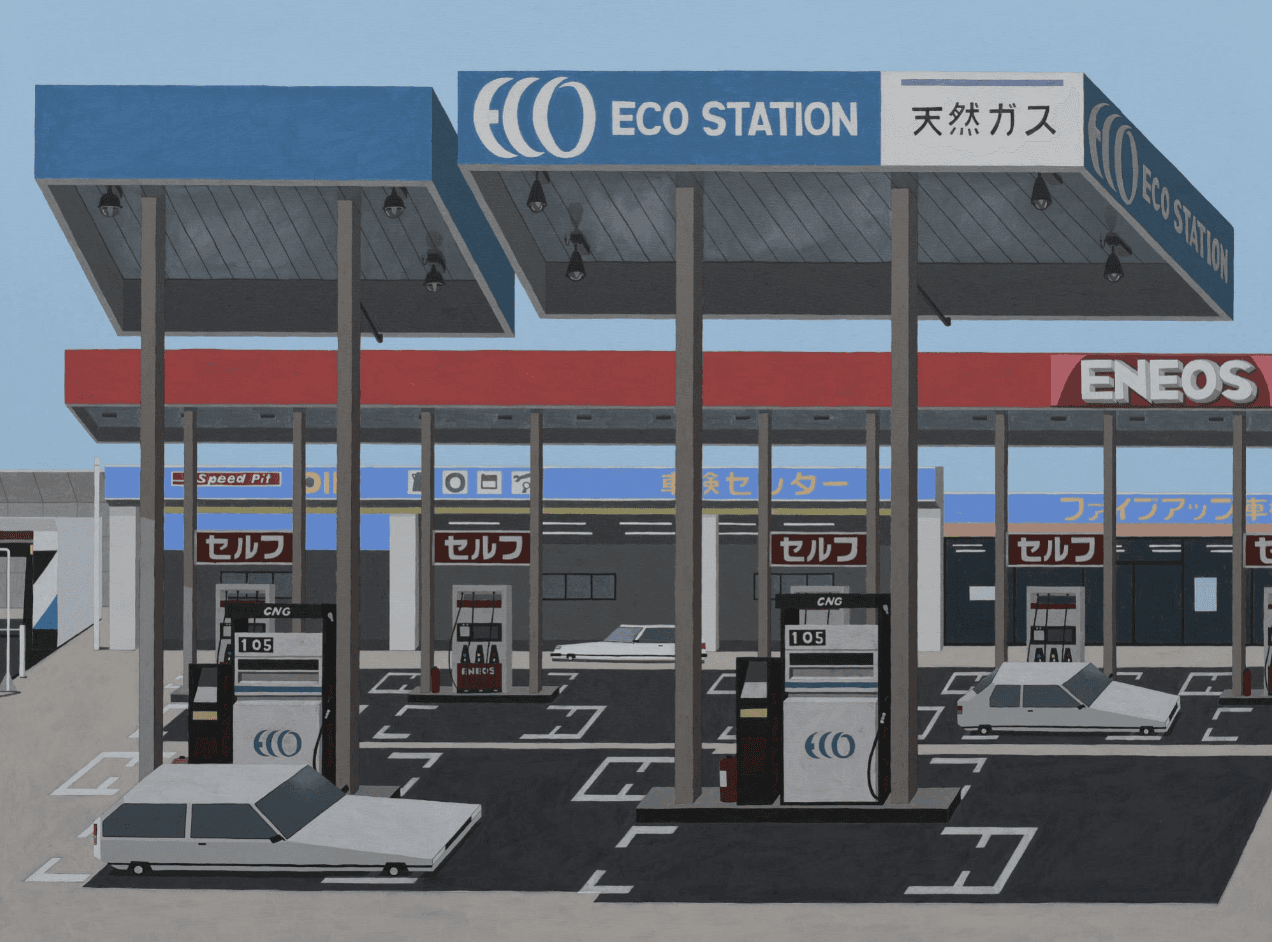 Motonori lives with his wife and their seven cats in the factory-lined suburb of Higashiosaka, Japan, where the industrial landscape quietly shapes his artistic vision. Surrounded by workshops and warehouses, he draws deeply from the everyday scenery of his neighborhood, weaving themes of place and memory into paintings that reflect both his personal history and the environment he calls home.