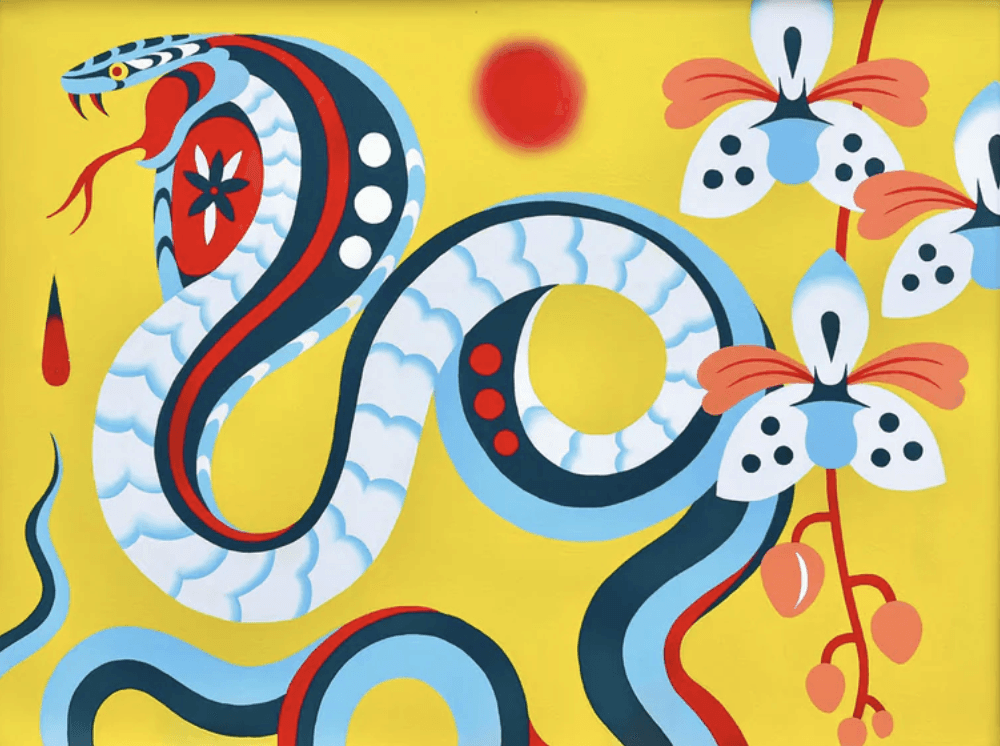 Stevie Shao is a Seattle born-and-raised illustrator and muralist whose work draws inspiration from life in the Pacific Northwest and her Chinese American background. Shao’s paintings depict real and folkloric imagery in scenes that evoke the mysticism of the natural world. Working in a variety of acrylic paints and swaths of color and pattern, she reinforces an environment constantly in motion and filled with symbolism.